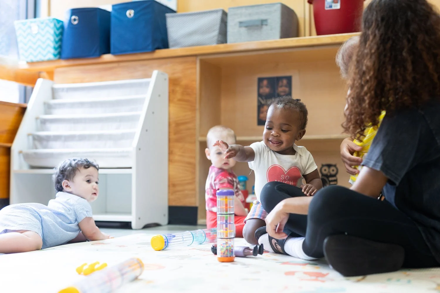 Our infant room nurtures young learners’ growth through play, music, and more, fostering physical, cognitive, and social development.